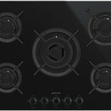 Поверхность: варочная панель • Тип поверхности: газовая • Рабочая поверхность: стеклокерамика • Число конфорок: 5 • Установка: независимая • Газовые конфорки: всего - 5 (1 конфорка "Тройная корона") • Газ-контроль конфорок: есть • Тип управления: механическое • Переключатели: поворотные • Электроподжиг: есть, автоматический • Размеры: 750x510x50 мм • Размер ниши для встраивания: 560x482 мм