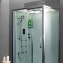Закрытая кабина, полностенная, левосторонняя, двери раздвижные, материал поддона: акрил, материал стенок: стекло, турецкая баня, тропический душ, вертикальный гидромассаж, габариты (ШхВхД): 90x220x120 см