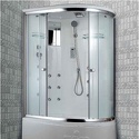 Закрытая кабина, полностенная, левосторонняя, двери раздвижные, материал поддона: акрил, материал стенок: стекло, тропический душ, вертикальный гидромассаж, габариты (ШхВхД): 85x220x120 см