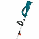 Двигатель: электрический, тип триммера: переносной, мощность электродвигателя: 1000 Вт, режущий элемент триммера: леска и нож, ширина скашивания: 38 см, конструкция штанги: прямая, плечевой ремень, количество колес: нет