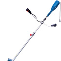 Двигатель: электрический, тип триммера: переносной, мощность электродвигателя: 1400 Вт, режущий элемент триммера: леска и нож, ширина скашивания: 42 см, конструкция штанги: прямая, плечевой ремень, количество колес: нет