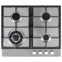 Поверхность: варочная панель • Тип поверхности: газовая • Рабочая поверхность: нерж.сталь • Число конфорок: 4 • Установка: независимая • Газовые конфорки: всего - 4 (1 конфорка "Тройная корона") • Газ-контроль конфорок: есть • Тип управления: механическое • Переключатели: поворотные • Электроподжиг: есть, автоматический • Размеры: 584x510x44 мм • Размер ниши для встраивания: 560x480 мм • Цвет: панель - нерж.сталь