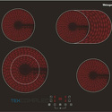 Электрические конфоркикерамические; всего - 4 (1 конфорка овальной формы, 1 двухконтурная, 1 трехконтурная)