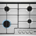 Поверхность: варочная панель • Тип поверхности: газовая • Рабочая поверхность: нерж.сталь • Число конфорок: 4 • Установка: независимая • Газовые конфорки: всего - 4 • Газ-контроль конфорок: есть • Тип управления: механическое • Переключатели: поворотные • Электроподжиг: есть, автоматический • Размеры: 595x510x40 мм • Размер ниши для встраивания: 560x480 мм • Цвет: панель - нерж.сталь