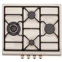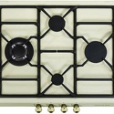 Поверхность: варочная панель • Тип поверхности: газовая • Рабочая поверхность: эмаль • Число конфорок: 4 • Установка: независимая • Газовые конфорки: всего - 4 (1 конфорка "Тройная корона") • Газ-контроль конфорок: есть • Тип управления: механическое • Переключатели: сенсорные • Электроподжиг: есть, автоматический • Размеры: 580x500 мм • Размер ниши для встраивания: 552x470 мм • Цвет: панель - бежевый
