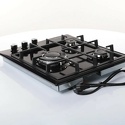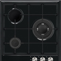 Поверхность: варочная панель • Тип поверхности: газовая • Число конфорок: 4 • Установка: независимая • Газовые конфорки: всего - 4 (1 конфорка "Тройная корона") • Газ-контроль конфорок: есть • Тип управления: механическое • Переключатели: поворотные • Электроподжиг: есть, автоматический • Размеры: 590x520x50 мм • Размер ниши для встраивания: 560x490 мм • Цвет: панель - черный