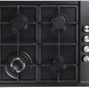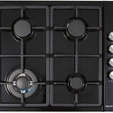 Поверхность: варочная панель • Тип поверхности: газовая • Рабочая поверхность: эмаль • Число конфорок: 4 • Установка: независимая • Газовые конфорки: всего - 4 (1 конфорка "Тройная корона") • Газ-контроль конфорок: есть • Тип управления: механическое • Переключатели: поворотные • Электроподжиг: есть, автоматический • Размеры: 580x500x48 мм • Размер ниши для встраивания: 560x480 мм • Цвет: панель - черный