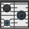 Поверхность: варочная панель • Тип поверхности: газовая • Рабочая поверхность: закаленное стекло • Число конфорок: 3 • Установка: независимая • Газовые конфорки: всего - 3 (1 конфорка "Тройная корона") • Газ-контроль конфорок: есть • Тип управления: механическое • Переключатели: поворотные • Электроподжиг: есть, автоматический • Размеры: 440x520x50 мм • Размер ниши для встраивания: 410x490 мм