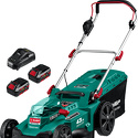 роторная газонокосилка • аккумуляторный двигатель • 36 В • аккумулятор в комплекте • ширина скашивания: 43 см • мягкий травосборник 55 л